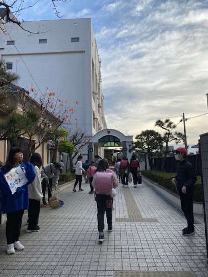 今日は月曜日good morning dayです。運営委員の子たちは、寒さに負けず、全員体制で朝のあいさつ運動を行っています(^^)