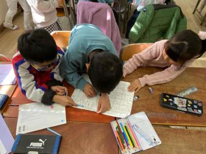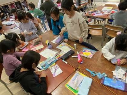 2年生の教室をのぞいてみると、それぞれの係がクリスマス会を目指して楽しく準備をしていました。