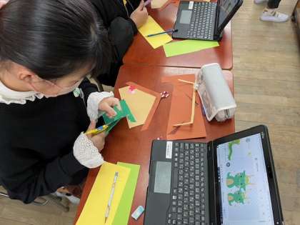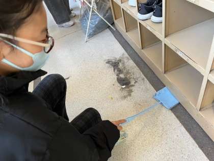 6年生のPTC清掃では、2学期後半に作ったオリジナル掃除用具が大活躍しました。