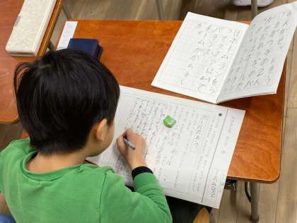 1年生の国語では『おはなしをかこう』ということで、自分が考えた人がどんどん大きくなってどんなことをするのかを考えて文を書くことにチャレンジしていました。