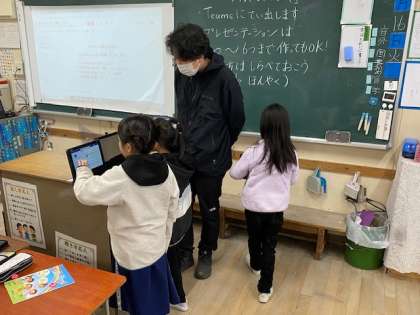 3年生の外国語活動では、『クイズを作ろう』とパワーポイントや検索エンジンを駆使して取り組んでいました。