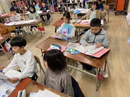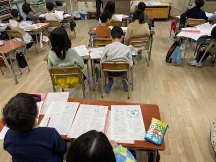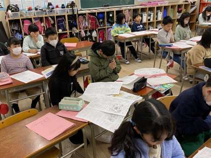3年生の社会科では、警察署の仕事や交通事故の件数や交通事故を減らす取り組みなどに関するテストが返却され、間違い直しに取り組んでいました。