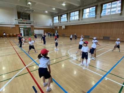先生から「3回続くように頑張ろう」と言われてチャレンジしていました。子どもたちはとても悪戦苦闘していました(^^)