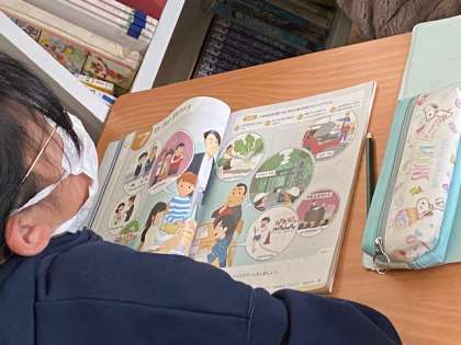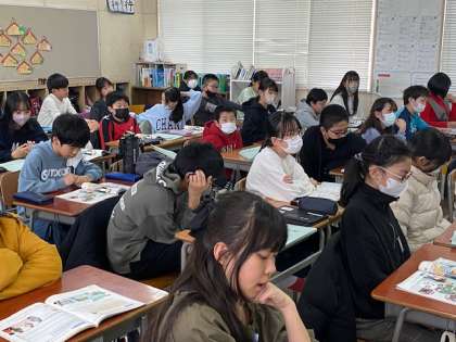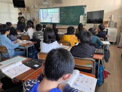 6年生の外国語では、学校生活の中の1番の思い出についてサンプルを視聴した後、学校生活の中で、自分の1番の思い出について考えていました