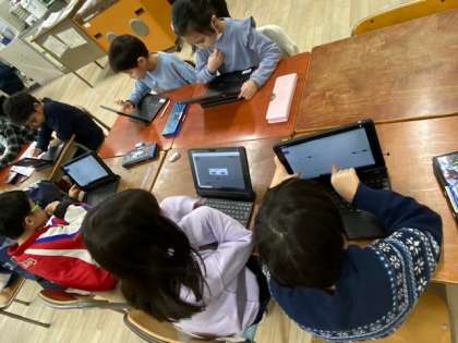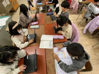 2年生の教室をのぞいてみると、デジタルドリル『ナビマ』に取り組んでいました。このドリルは、正解すると難易度が上がり、間違えると分かる段階に遡るようにできている、いわゆるAIドリルです。