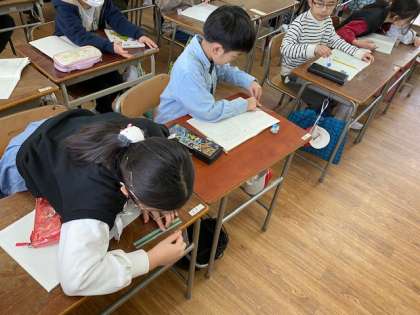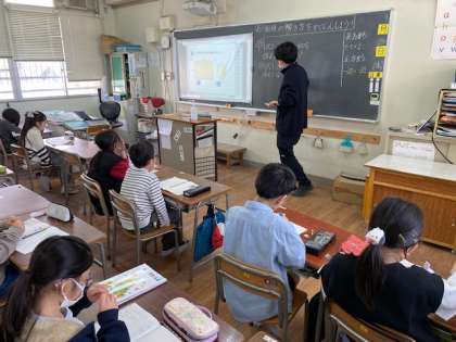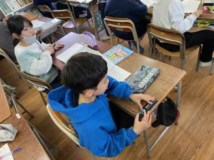 4年生の算数では、いろいろな大きさの長方形・正方形の面積の求めていますが、今日は、日頃使っている机の面積を調べていました。