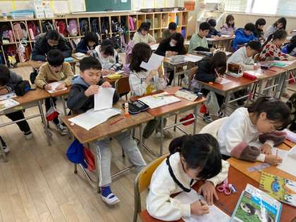 3年生の算数では『2けたのかけ算の筆算』から、今日は1けた増えて、『3けた×2けた』の筆算に取り組んでいました。