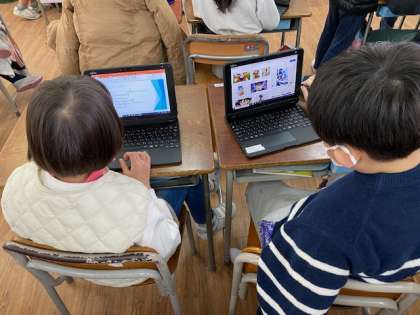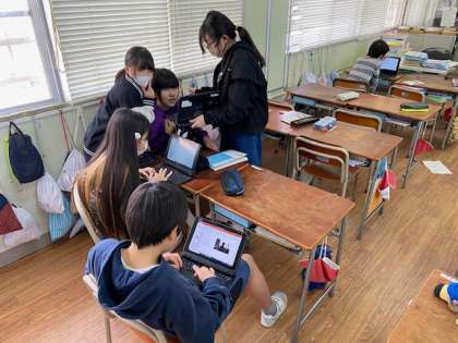 インターネットから好きなキャラクターを調べる子もいれば、教室の友だちの写真を撮っている子もいました。