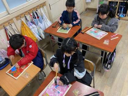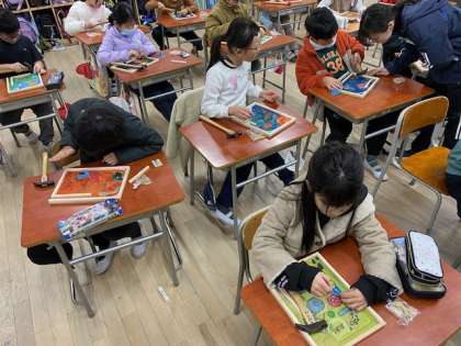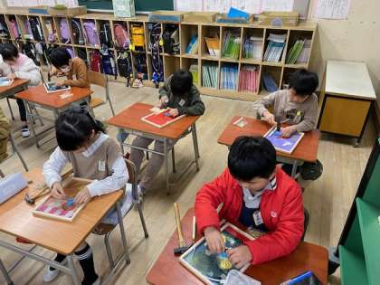 3年生の図工では、『くぎ打ちトントン』ということで、こりんとゲームを作っています。