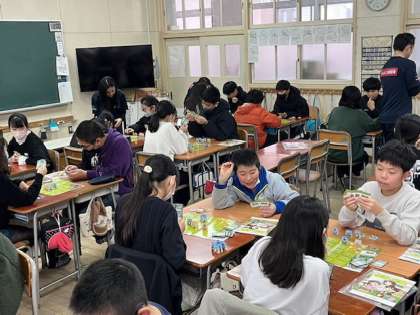 6年生は、今日、日興証券の方々をゲストティーチャーとしてお招きし、お金やその流通について学習しました。