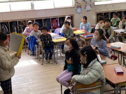 2年生の国語では、『おうちの人をしょうかいします』ということで、家族のうちの一人を紹介する作文を書き、友だちの前で発表しました。