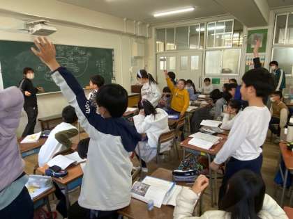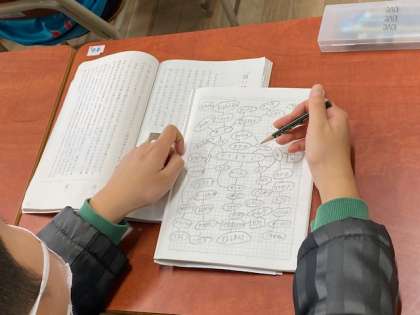 5年生の国語では、『テクノロジーについて考えよう』という説明文の学習で、まず『テクノロジー』と聞いて連想することについて、ウェビング(web図のように考えを広げていく思考ツール)で、考えを広げていきました。