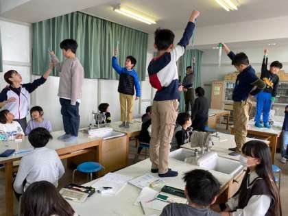 4年生は、理科では、『空気はどのようにあたたまっていくのだろうか』とのめあてを持って教室の上と下の温度を比べました。