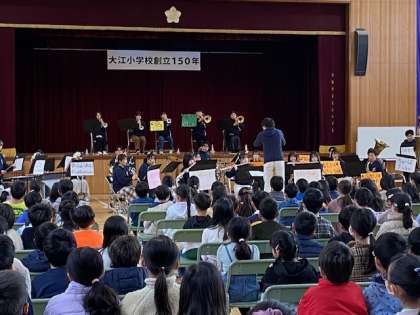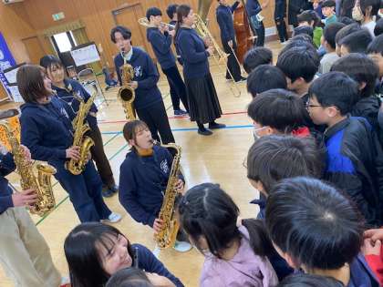 本日、大阪教育大学の吹奏楽部の方々に来ていただいて、音楽鑑賞会を行いました。