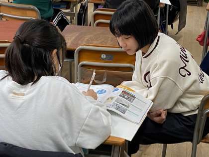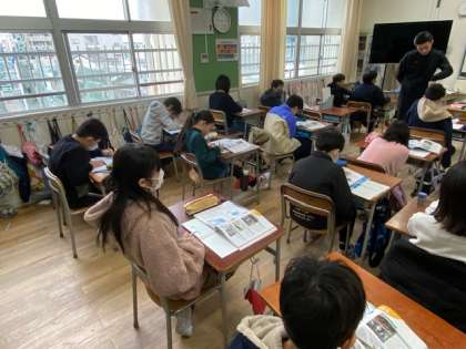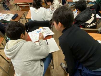 5年生の理科では、『水の量や温度によるちがい』の練習問題にチャレンジしていました。5年生は、これまで塩やミョウバンを溶かす実験をしてきました。互いに考えを共有する姿も見られました。