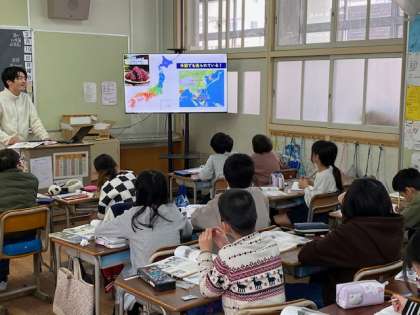 それにつけても、先週から4年生の教室に入った55インチのモニターが、早速、綺麗な映像を映していました(^^)