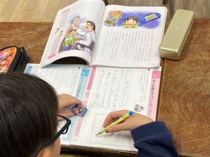 3年生の道徳では、『ぼくを動かすコントローラー』というお話を通して、『ぼく』や『おばあさん』の気持ちを想像して感じたことを書いていました。