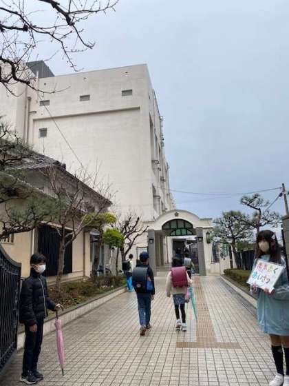 今朝は気温10度。天気は雨時々曇り。子どもたちが登校してくる時は、雨は一旦止みました。
