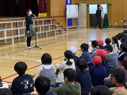 今日は、今年度、学校創立150年の1年間かけて取り組んできた。『大江っ子チャレンジ150!』の結果報告会です。個人で、学級で、学年で150にまつわる目標を掲げ取り組んできたことを各学年3分間で発表します。