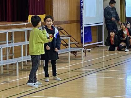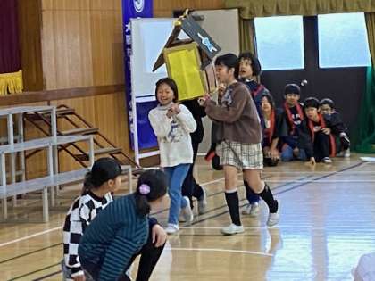 4年生は『大阪のお祭りを150こ調べること』に取り組んだことを報告。岸和田のだんじり、盆踊りで河内音頭を踊る様子を実演してくれました。