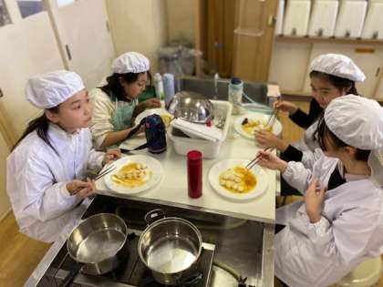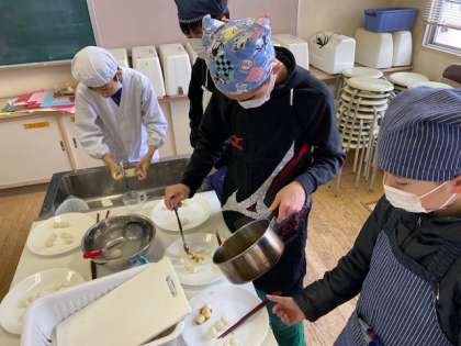 6年生の家庭科では、調理実習を行いました。5年生の実習内容と似ていますが、今の6年生は昨年度白玉を扱った実習ではなかったので、このタイミングで白玉を扱いました。