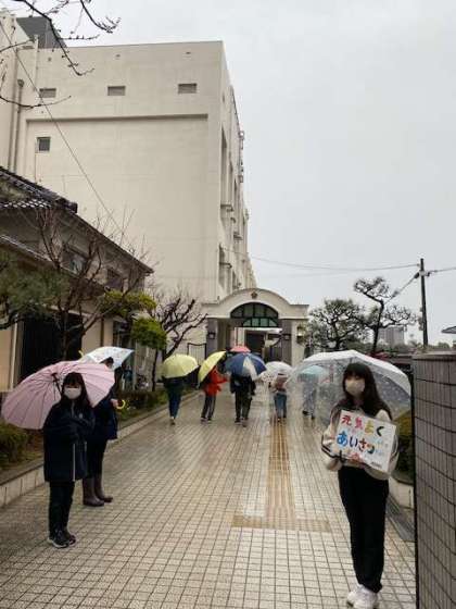 こんな日こそ明るくいこう!と、運営委員の子たちによるあいさつ運動は元気に頑張っています(^^)