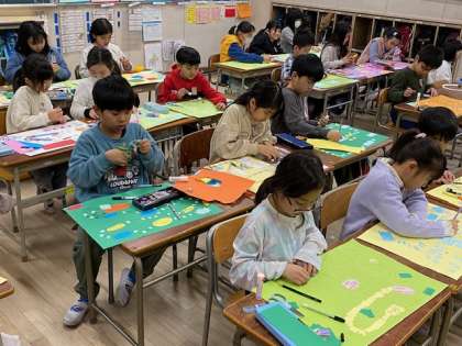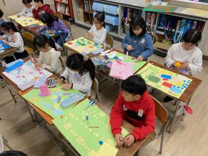 2年生の生活科では、この1年間でできたことや出来事を並べて『1年間すごろく』を作っていました。