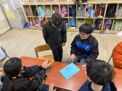 今日でラストをむかえた本年度のなかよし(縦割り)班活動では、1年生から5年生が今日までひそかに作っていたメッセージカードを6年生に渡し、1年間リーダーとして頑張ってくれた6年生へ感謝の気持ちが伝えられました。