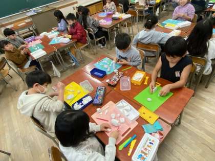 『創立150年お祝い集会』や最近体育でやった『しっぽ(タグ)取り』など学校生活のワンシーンもあれば、猫と遊んでいるところとか、クリスマスパーティーなど、家での出来事を作っている子もいました。
