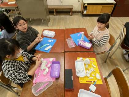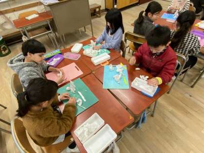 2年生の図工では、この1年間を振り返って思い出に残るシーンを粘土で作っていました。