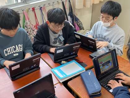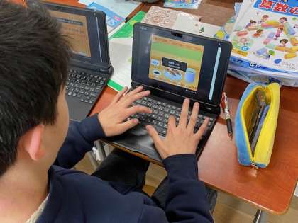5年生の教室をのぞいてみると、『わかる算数』に取り組んでいる子、それが終わったらタイピングゲームでブラインドタッチのトレーニングをしている子など、個々の課題に取り組んでいました。