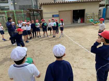 3年生の体育では、『ポートボール』に取り組んでいました。