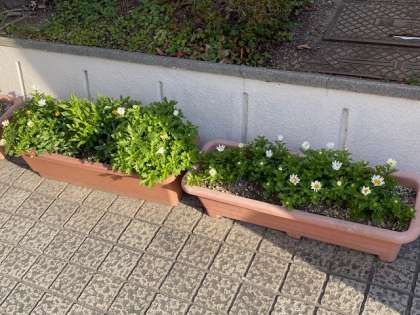 私たちもそうですが、この太陽の光に、門前の桜辺りにある野菊も嬉しそうです。