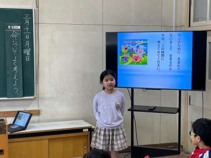 その中にある歌詞「なんのために生まれて なにをして生きるのか」を子どもたちなりに考えました。