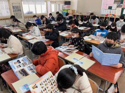 本日、6年生に出来上がったばかりの卒業アルバムが配られました。