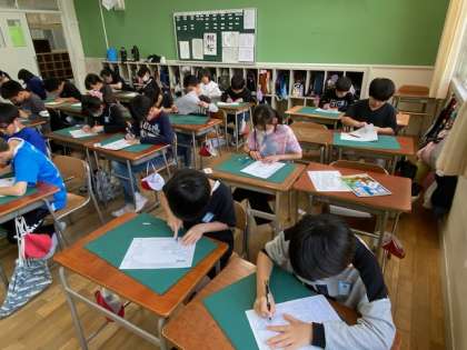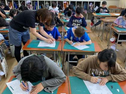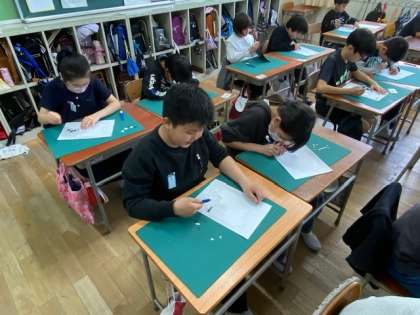 カッターナイフで細かい部分を切っていくので、とても慎重に作業をしていました。さあ、どのような絵が仕上がるのでしょうか。