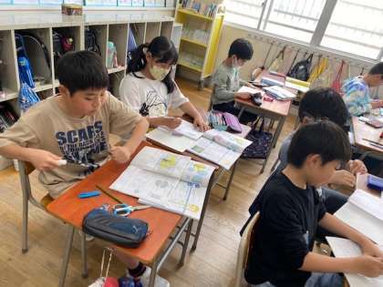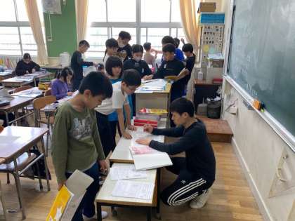 プリントができた子から先生に確認してもらいました。