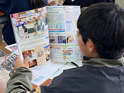 6年生の社会科では『日本国憲法には、どのような考えがあるのか調べよう』というめあてで学習を進めていました。