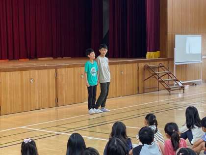 今日の児童集会では、代表委員会の紹介がありました。