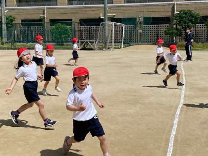 1年生の体育では、かけっこに取り組みました。