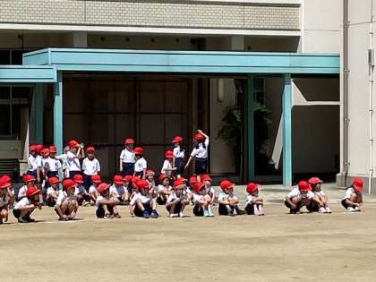 体育の時間では、整列して移動したり、等間隔に広がったり、集団行動を一つ一つ経験していっています。