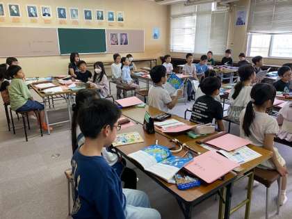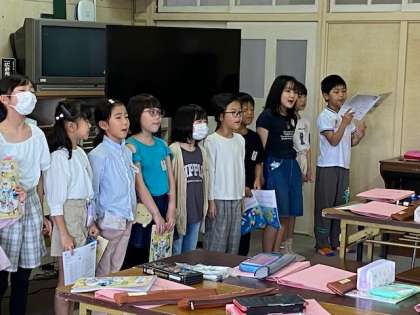 後半、歌う場所も分かれて、互いの声が教室の真ん中で出会うように歌いました。