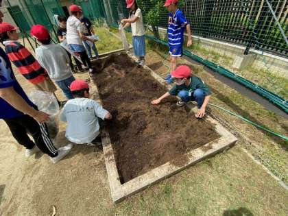 今日は、学習園に花の土を入れました。さあ、どのような植物を育てていくのでしょう。
