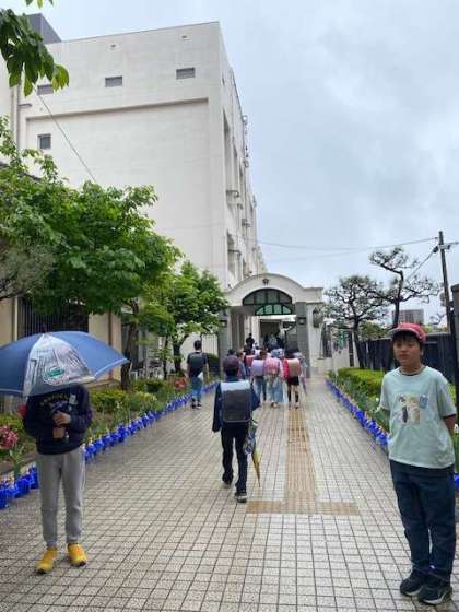 今日は、朝から小雨が降っていましたが、子どもたちが登校してくる時間には雨もあがり、ほとんどの子が傘を閉じて登校するようになりました。