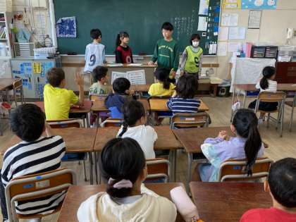 1年生にとっては初めてのこと。6年生のリーダー、サブリーダーを中心に、1年生にも分かるように説明を加えていました。