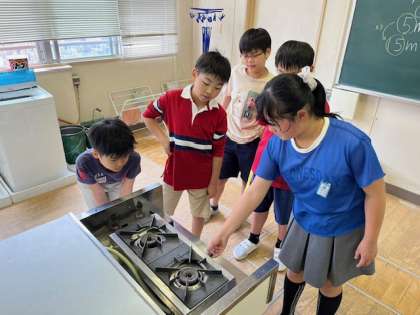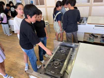 5年生の家庭科では、ガスコンロの使い方を学習しました。