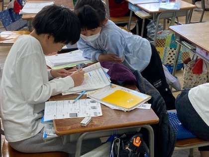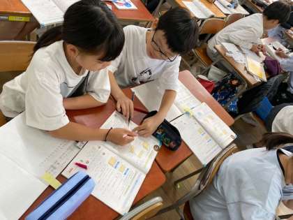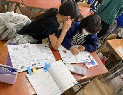 答えを導くために、互いにヒントを教え合いながら学ぶ姿があちこちで見られました。