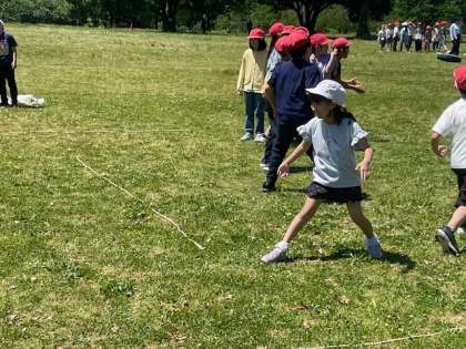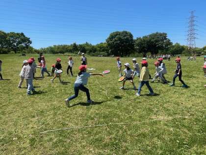 最初は投げ方にとまどっていましたが、だんだんきれいに投げていました。