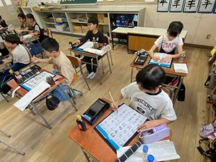 4年生の習字では、自分の名前を書くことにチャレンジしました。