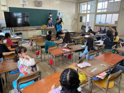 大江小学校では、1年生から6年生までの縦割りの班を作って、年間通じて様々な活動をします。